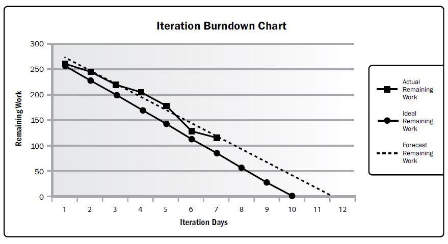 모든 팀원이 매일 약속된 시간에 약 15분 정도의 짧은 시간동안 진행 상황을 점검한다. 회의는 보통 서서 진행하며, 남은 작업 시간은 소멸 차트(Burn◍down Chart)에 표시한다. 소멸 차트는 해당 스프린트에서 수행할 작업의 진행 상황을 확인할 수 있도록 시간의 경과에 따라 남은 작업 시간을 그래프로 표현한 것인데, 프로젝트가 진행될수록 시간이 감소하여 ‘Burn-down Chart’라고 한다. 스크럼 마스터스는 현재의 장애요소를 공론화 하거나, 소멸 차트에 따른 데이터를 확인하여, 발견된 장애 요소를 해결할 수 있도록 돕는다.