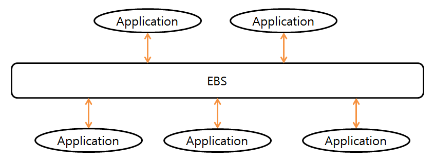 애플리케이션 사이에 미들웨어를 두어 처리하는 방식이다 .확장성이 뛰어나며 대용량 처리가 가능하다. |
