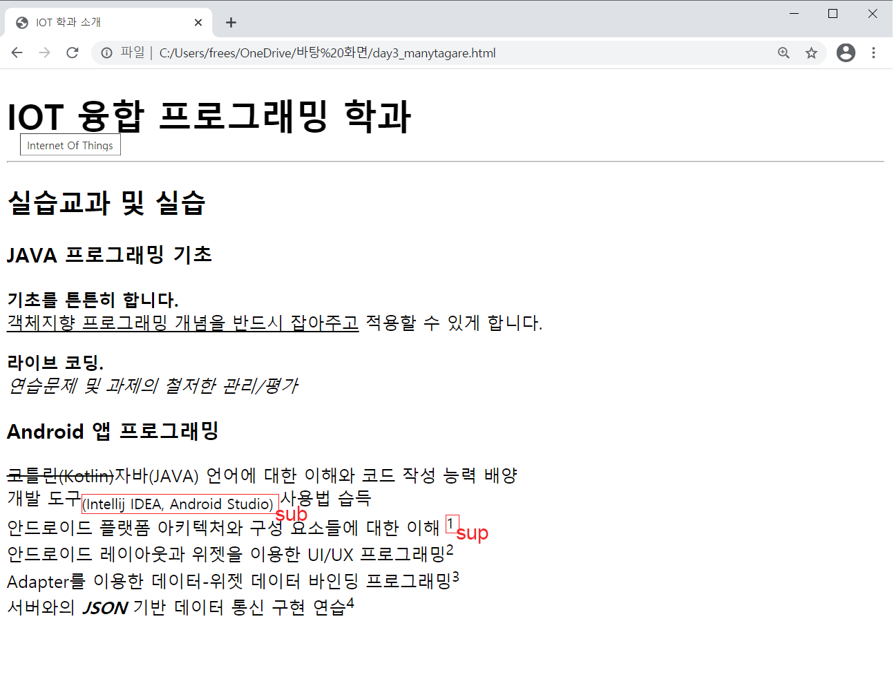 12. 글자(혹은 문장) 사이의 포함관계를 규정하는 Tag: <sub></sub> 와 <sup></sup>