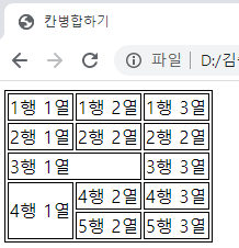 이때, 병합하고자 하는 칸은 ‘공란’이어야 한다. (td태그 또한 존재하면 안된다.)
