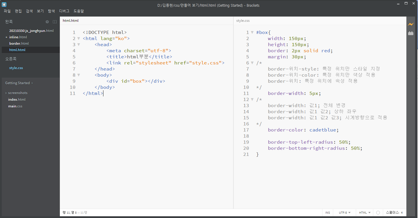 Tip. CSS 주석은 Tag 주석인 <!-- -->가 아닌 /* */을 주석으로 사용한다.