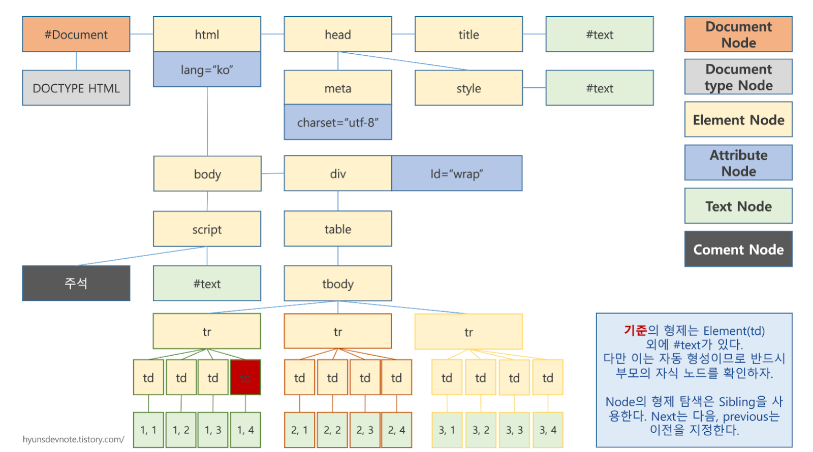 nextSibling | 해당 노드의 형제 노드중 해당 노드보다 다음 노드를 선택한다. (==부모 노드에 대해 childNode[i+1]) |