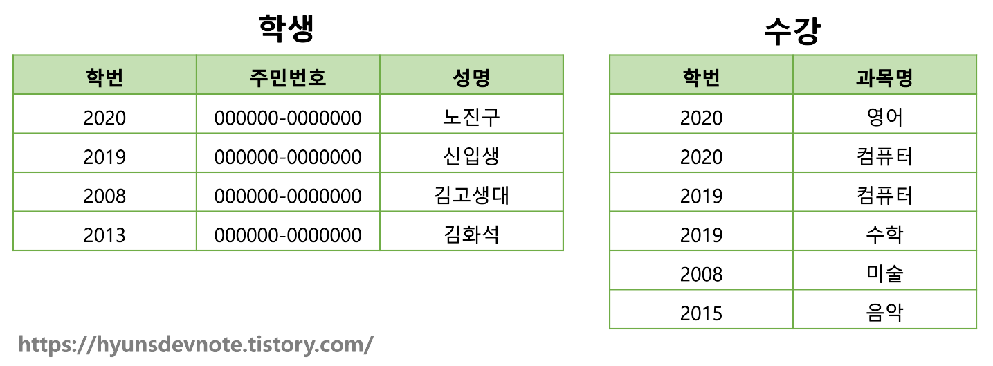 ◍ 타입: 개체 인스턴스를 제외한 속성의 집합이다. (학번 + 이름 + 전공 + 동아리/ 모두 합쳐 타입이라고 한다.)